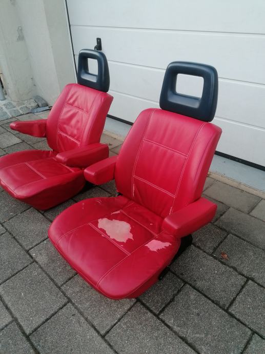Prodam spednja dva pilotska sedeža vw t3, funkcionalna v rdečih prevlekah. Rokonasloni so različni, voznikov sedež ima rokonaslone starega tipa brez regulacije.