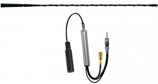 DAB spliter je izdelek, kateri se vklopi "in-line" z vašo obstoječo anteno, ki jo imate že na avtu. Spliter poskrbi, da dobite iz njega tudi digitlani signal za DAB+ sprejemnik. Spliter ima vgrajen ojačevalnik, zato signal ojača, primeren pa je za pasivne antene nameščene spredaj na strehi. V kompletu se nahaja tudi antesnki teleskop z ustrezno dolžino.