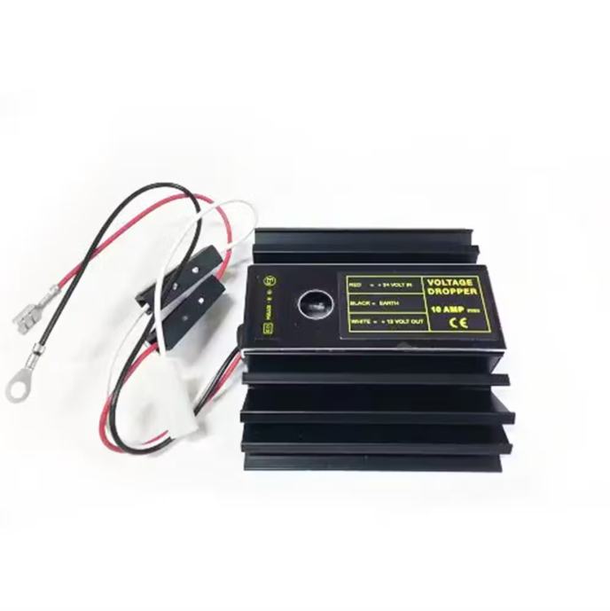 Pretvornik napetosti iz 24 V na 12 V. Največji izhodni tok 10 A. Pretvornik je namenjen za priklop najobčutlivejših elektronskih naprav, kot so npr. avtoradii, v tovornjake in ostala vozila z napetostjo 24V, saj pretvarja 12V napetost v stabilno 24V in s tem zagotavlja varen priklop.