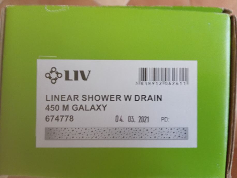 Prodam novo, v originalni embalaži zaprto kanaleto za tuš LIV, Linear Shower W Drain 450 M Galaxy, šifra izdelka 674778, redna cena v trgovini od 85€ do 105€.