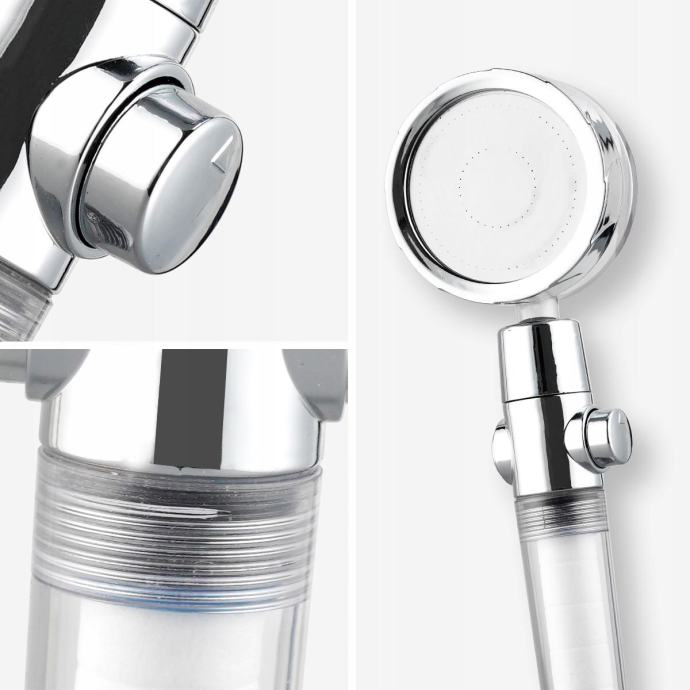 Filter , nameščen v slušalki, učinkovito znižuje raven težkih kovin, klora in bakterij v vodi, zaradi česar kopel ne draži kože in oči.