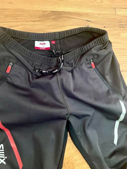 Prodam le nekajkrat rabljene otroške hlače za tek na smučeh iz elastičnega softshell materiala. Elastika v pasu in zadrgi na hlačnicah, št. 140.