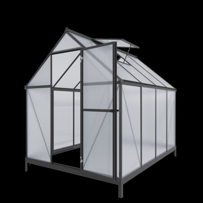 Floraworld rastlinjak Confort je zasnovan za učinkovito gojenje rastlin, zaščito pred vremenskimi vplivi in optimalno mikroklimo za pospešeno rast. Opremljen je s trpežnim aluminijastim okvirjem, ki zagotavlja dolgo življenjsko dobo in odpornost proti vremenskim vplivom. 4 mm debeli polikarbonatni paneli nudijo odlično toplotno izolacijo, kar pripomore k stabilni temperaturi in boljši rasti rastlin. Dodatno so na voljo tudi 2 zložljiva okna, ki ju je mogoče zakleniti v različnih položajih za enostavno prezračevanje in prilagoditev notranje temperature.