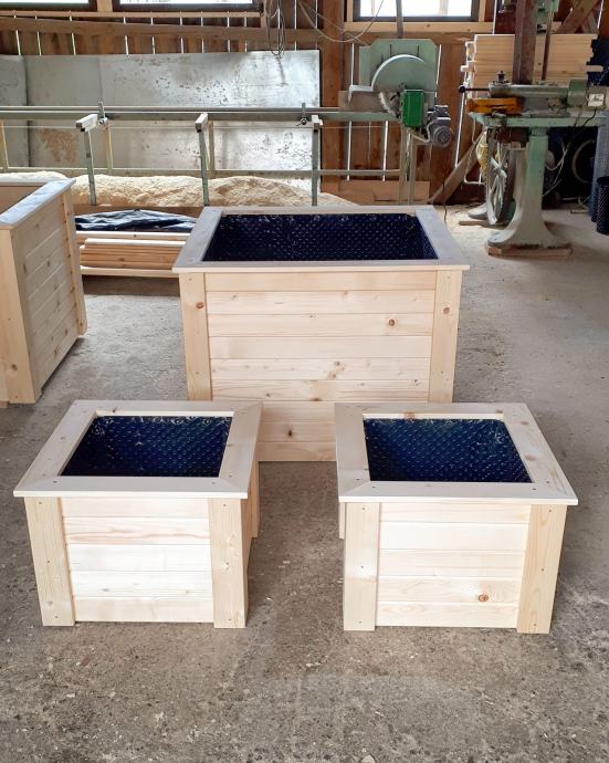 Izdelane iz zdravega smrekovega lesa. Visoke grede so komplet vijačene. Grede znotraj zaščitene z čepasto folijo.V notranjosti so grede ojačene z navojno palico.