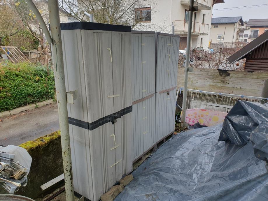 Vrtne omare 3 kom, ena o.k dve rahlo poškodovani. Cena za kos.Mere Cca 170 x38 x 68.Ena malo širša.