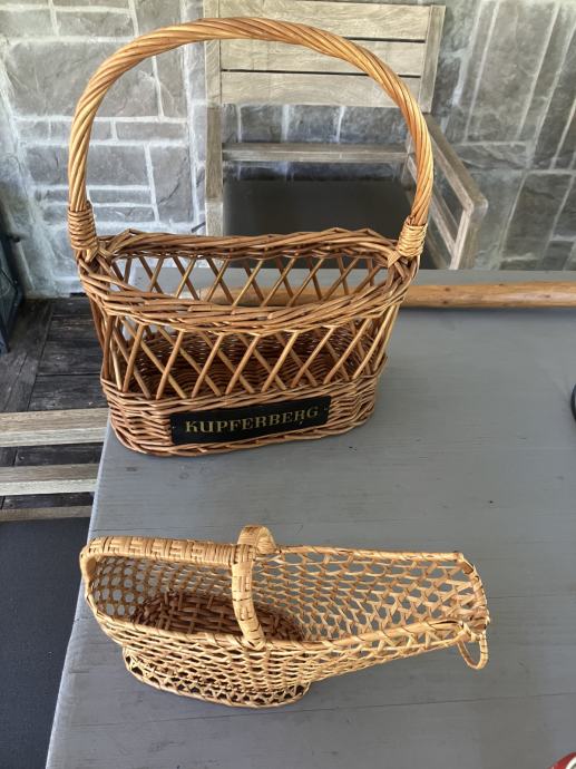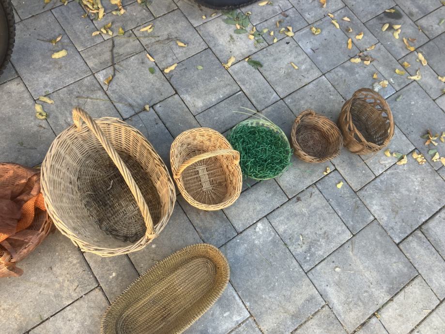 več pletenih košar, večje cca 30 x 40 cm 12 eur, malo manjše 10 eur,najmanjše 2 do 5 eur, lesen nosilec 5 eur