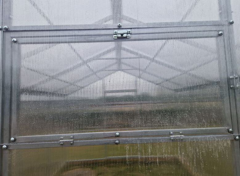 Standardna postavitev vključuje dvoje vrat in dve okni – po eno na vsakem koncu, kar omogoča dobro prezračevanje. Po želji lahko dodate stranske ali strešne zračnike za natančen nadzor temperature in vlažnosti, kar je idealno za občutljive rastline.