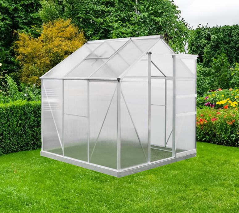 Srebrn aluminijasti rastlinjak Flora 4 m² - 192 x 192 x 201 cm