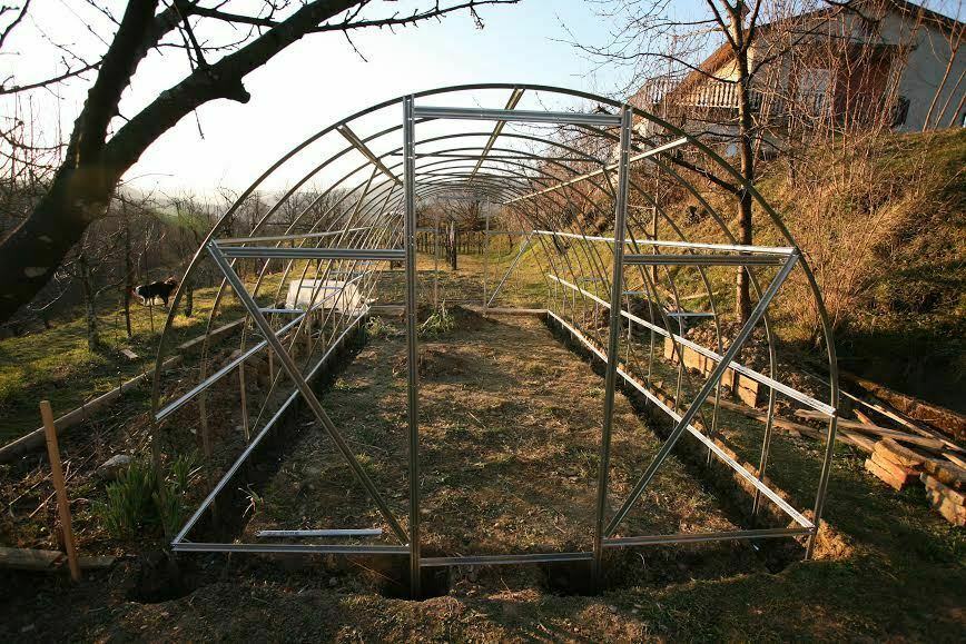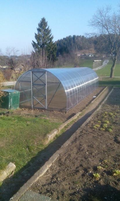 Konstrukcija je sestavljena iz robustnih jeklenih profilov 60x20 mm. Rastlinjak je možno podaljšati po 2 metra.