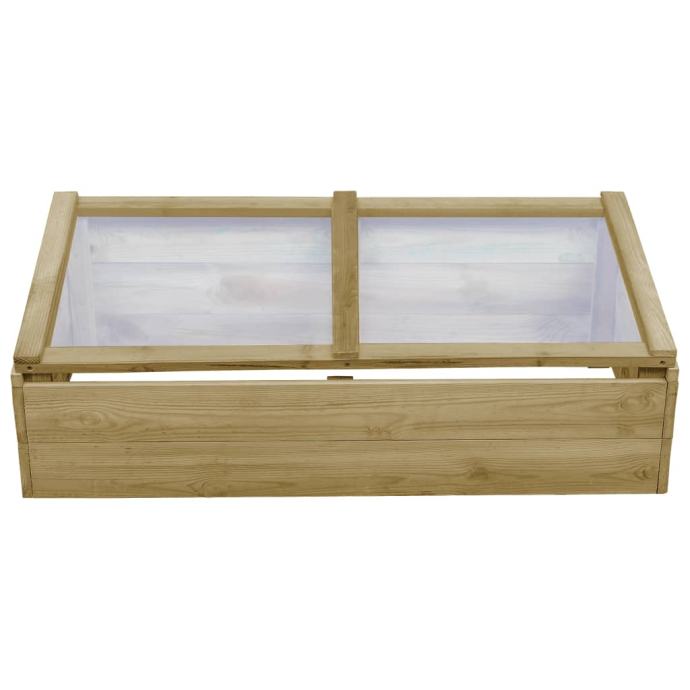 Ta lesen rastlinjak je odlična izbira za DIY vrtnarje, ki želijo na svoj vrt dodati cvetlično gredico. To dvignjeno korito se ponaša s preprosto, rustikalno obliko in močno konstrukcijo. V vaše zunanje prostore bo vneslo pridih naravnega stila. Naše korito je primerno za precejšnje število zelenih rastlin in rož. Izdelano je iz visokokakovostne impregnirane borovine, ki je trajna, odporna na vremenske vplive in trohnenje. Zahvaljujoč edinstveni zasnovi strehe ponuja toploto in zaščito pred hladnim vremenom. Ta vrtni rastlinjak je preprost za sestavo. Upoštevajte, da je les naraven izdelek, na katerem so lahko vidne nepopolnosti.