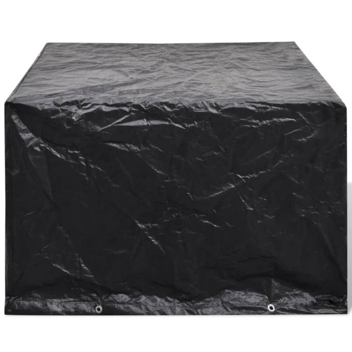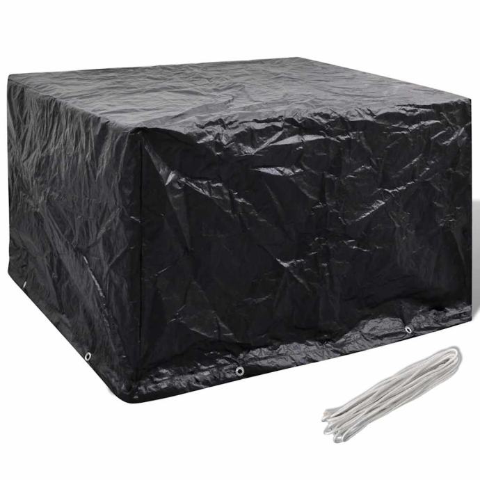 Visokokakovostno pokrivalo za vrtno pohištvo je primerno za celoletno zaščito vašega pohištva iz ratana pred umazanijo, vetrom, dežjem in UV svetlobo. Lahko se uporablja tudi za zaščito vrtnih miz ali klopi. Pokrivalo je izdelano iz trpežnega polietilena, ki je odporen na vodo, UV in trganje ter zato primeren za vsakodnevno uporabo. Ima 8 aluminijastih obročkov in privezovalno vrvico, da se bo bolje prilegalo vaši garnituri. Opomba: Ta izdelek ni 100 % vodotesen. Zato priporočamo, da ga zaščitite z vodoodpornim razpršilom za boljšo vodoodpornost.