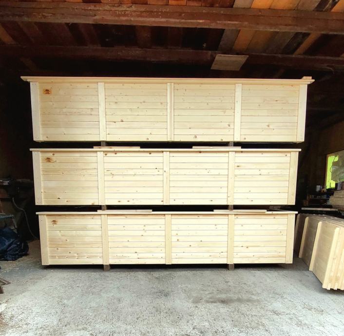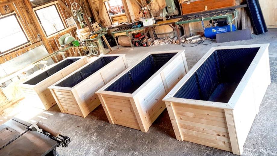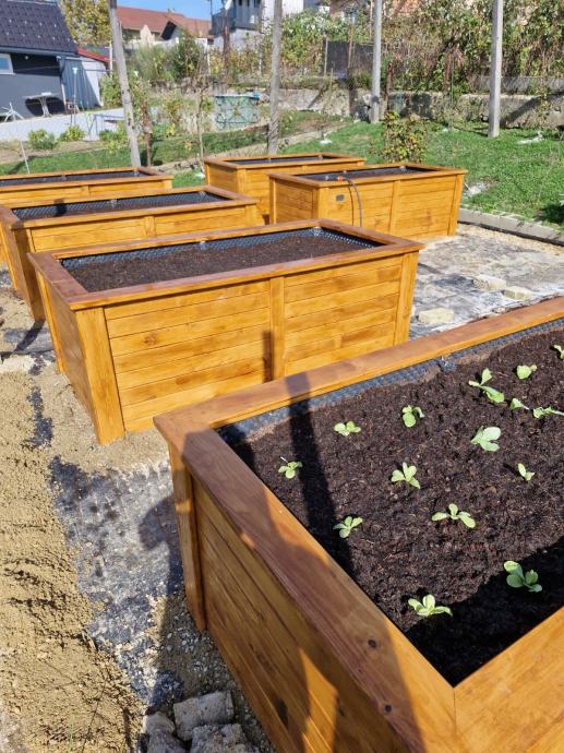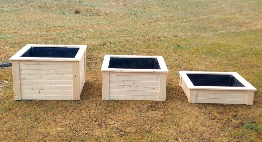 Izdelane iz zdravega smrekovega lesa. Visoke grede so komplet vijačene. Grede znotraj zaščitene z čepasto folijo.V notranjosti so grede ojačene z navojno palico.