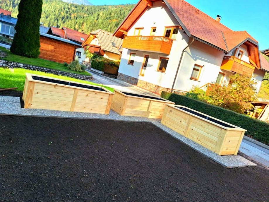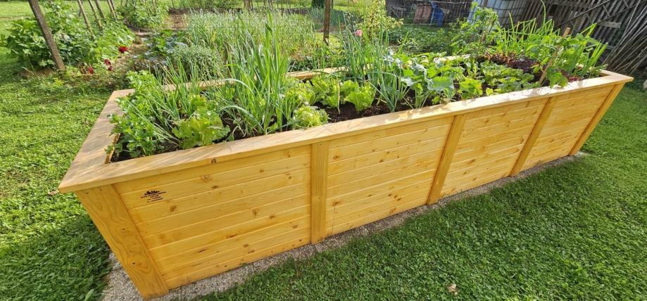 Izdelane iz zdravega smrekovega lesa. Visoke grede so komplet vijačene. Grede znotraj zaščitene z čepasto folijo.V notranjosti so grede ojačene z navojno palico.