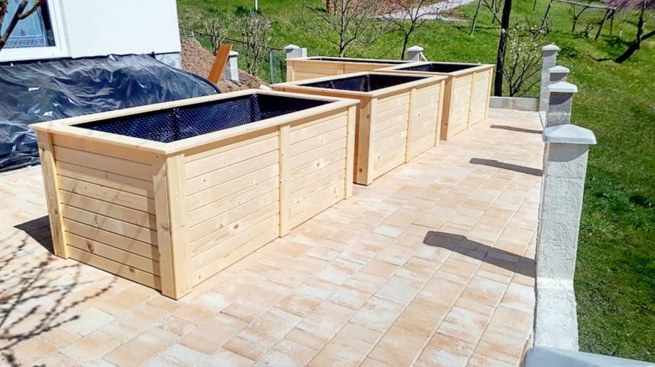 Izdelane iz zdravega smrekovega lesa. Visoke grede so komplet vijačene. Grede znotraj zaščitene z čepasto folijo.V notranjosti so grede ojačene z navojno palico.
