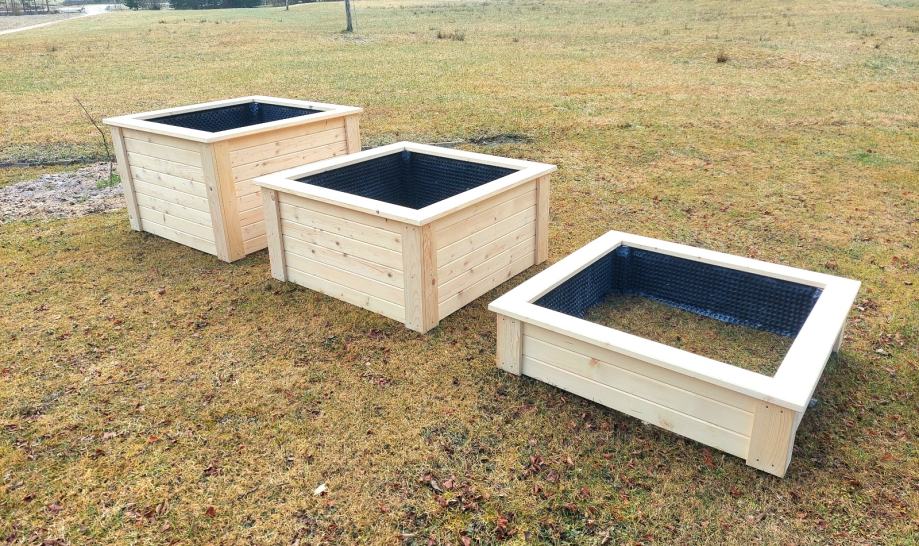 Izdelane iz zdravega smrekovega lesa. Visoke grede so komplet vijačene. Grede znotraj zaščitene z čepasto folijo.V notranjosti so grede ojačene z navojno palico.