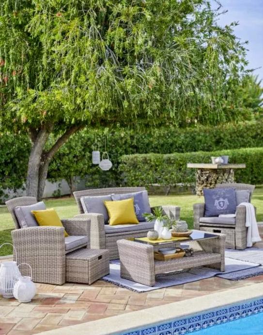 Nova vrtna garnitura set RUNAWAY-SC, sedežna, tabure, miza, blazina, 6
