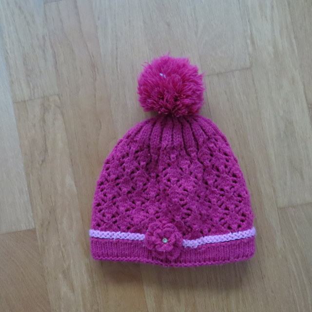 Prodam dekliško kapo za otroka, starega od 6-9 let, malinasto rdeče barve z okrasno rožico in kamenčkom, atraktivnega videza.