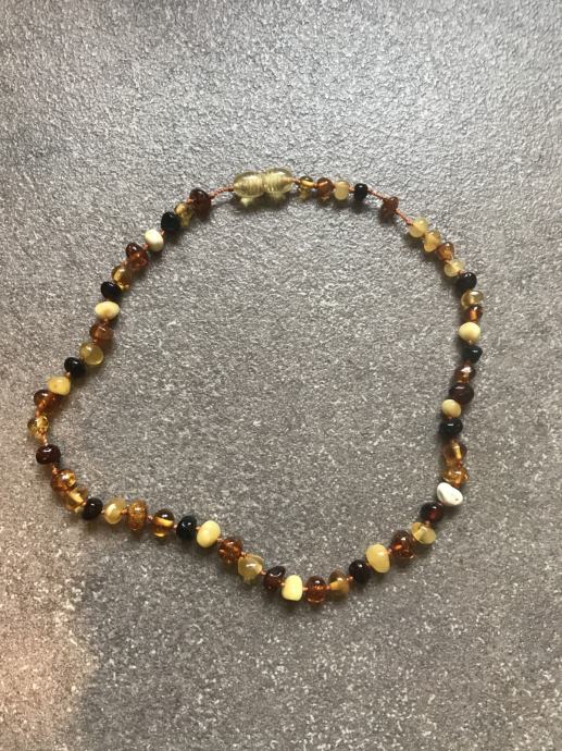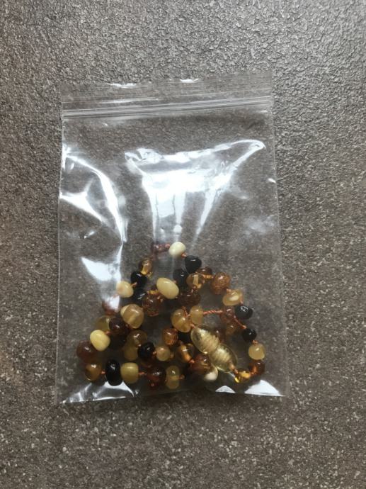 Prodam jantarno ogrlico za dojenčke, ki dobrodelno deluje pri izraščanju zob. Zelo maro rabljena.