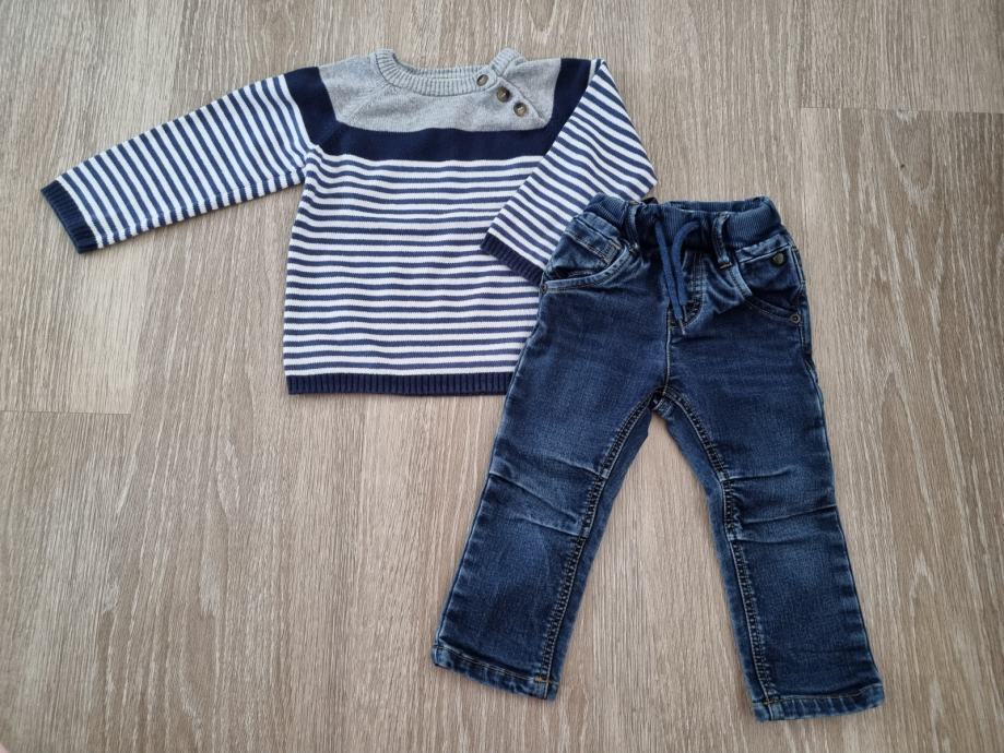 Kavbojke Name it, velikost 86, regulacija v pasu in jopica H&M, velikost 86.