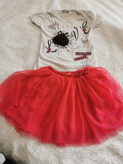 Komplet 128 vsebuje krilo in majčka. Krilo zelo lepo ohranjeno, majčka dobro ohranjeno (en madež, ki se niti na sliki ne vidi in je viden le od blizu). Krilo ni tako žive barve, kot na sliki.