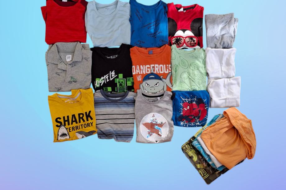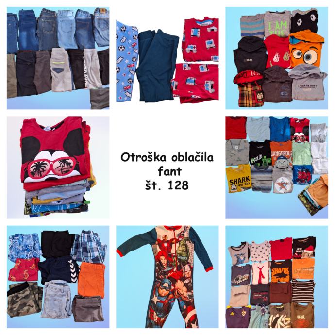 Komplet otroških oblačil fant št. 128 (čez 80 kosov + podarim)