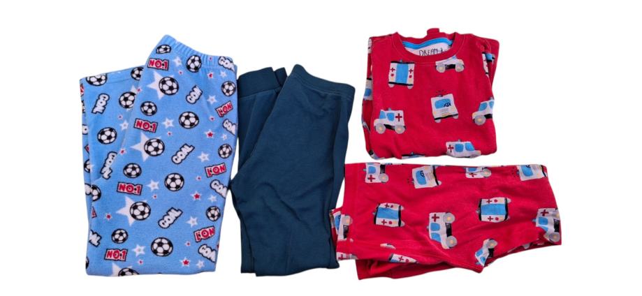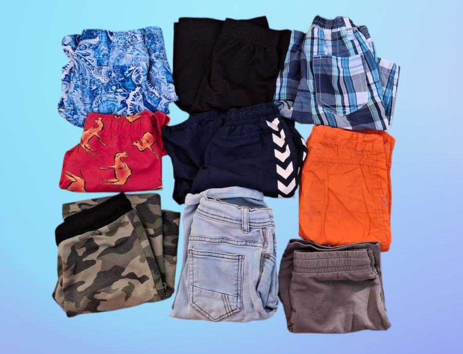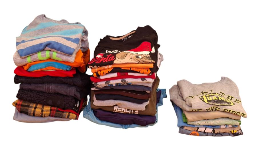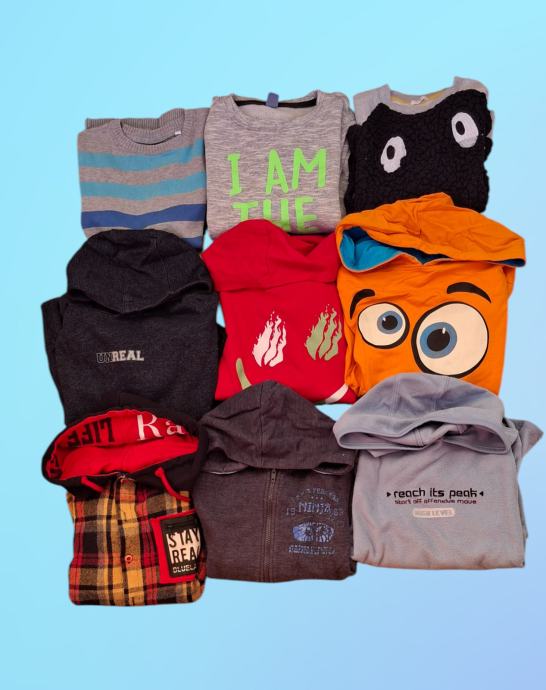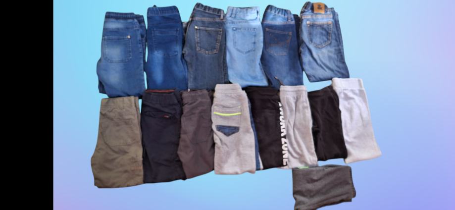 v kompletu so kavbojke, hlače, trenerke, kratke hlače, pižame, puloverji, kapucarji (mikica s kapuco), kratke majice,....