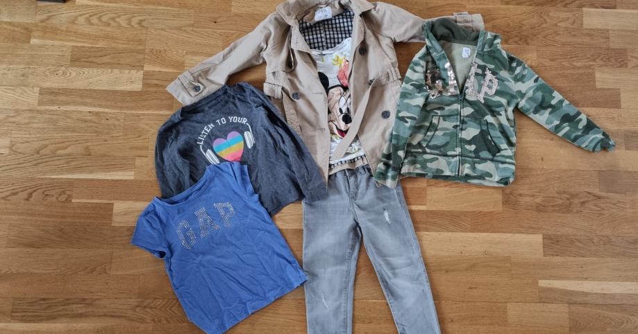 V kompletu prodam lepo ohranjene stvari Gap in Zara, nekatere stvari nošene le 1-2x. V kompletu so: - Zara kavbojke št. 6; - Gap hoodie S (št. 5-7) - Gap majica S z dolgimi rokavi (št. 6-7) -Gap majica s kratkimi rokavi (št. 6-7) - Zara Minnie majica 6 let. Ne menjam, cene posamično dražje.