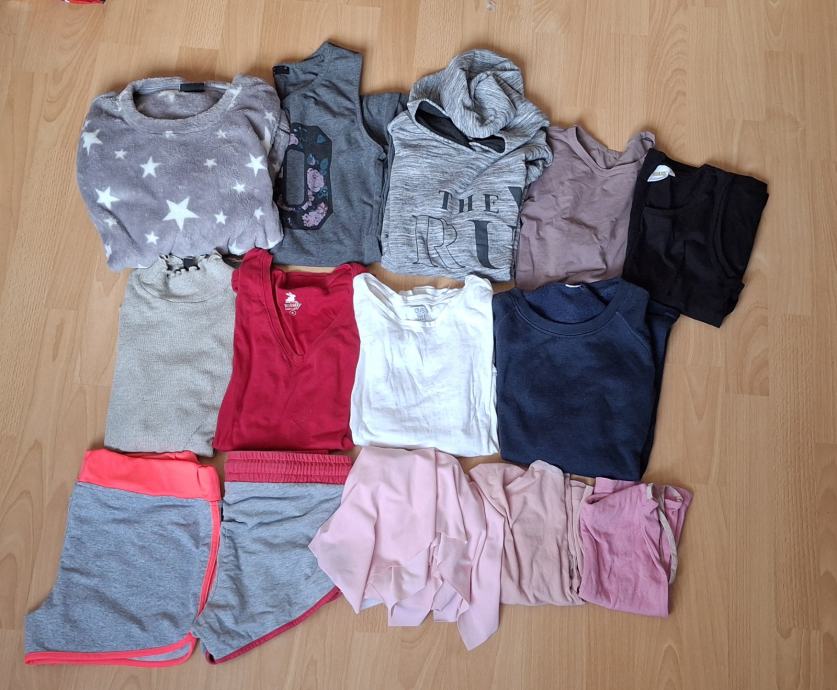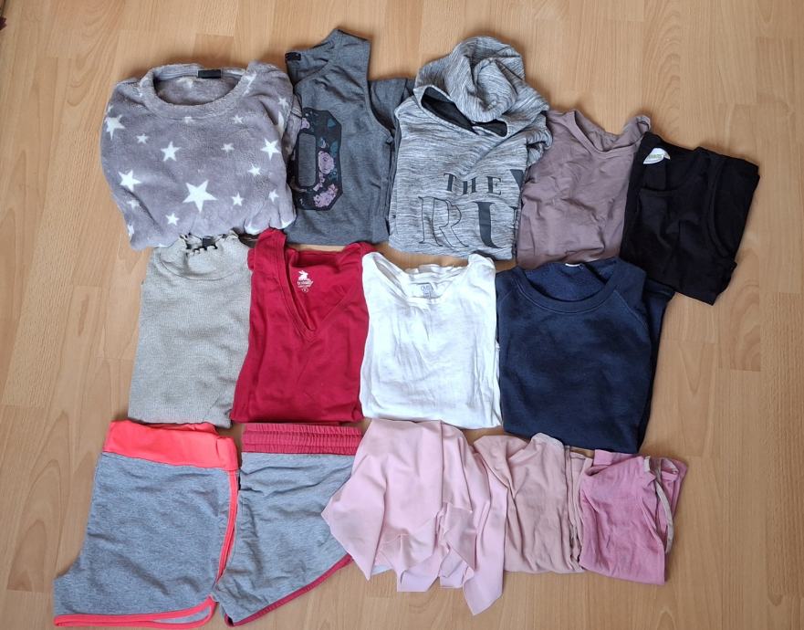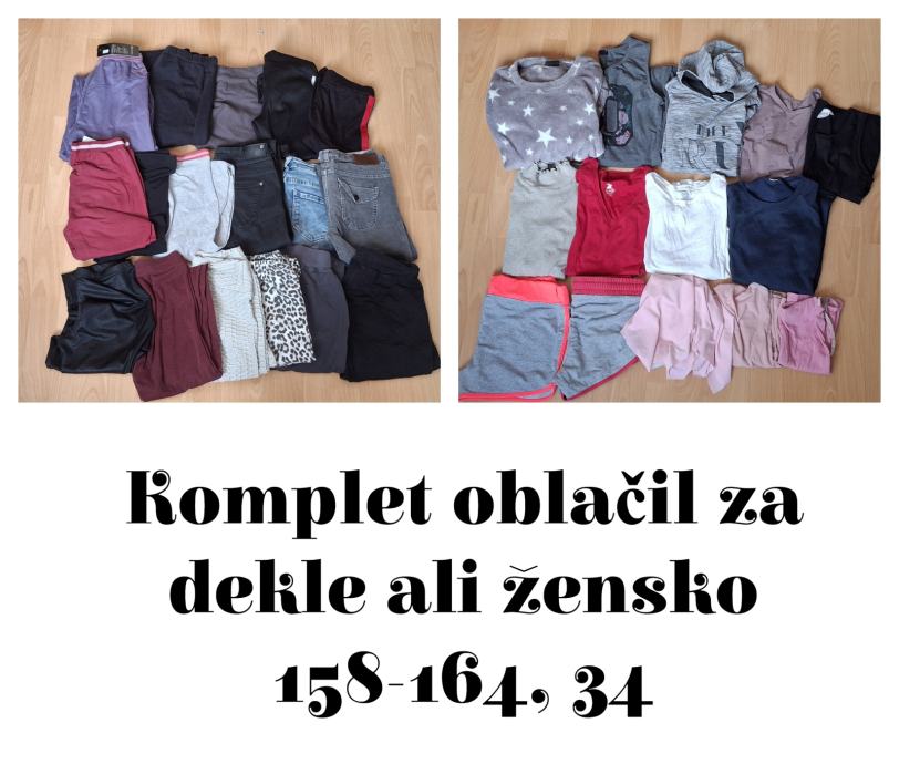V kompletu so kavbojke, hlače legice oz pajkice, kratke hlače, majice, krilo, obleka, dolg kapucar,...