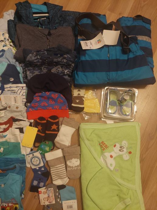 Bodiji,pajaci,majicke,jopce,ski hlace,bunda,nogavice,kape,rokavice,kopalna brisaca...več kot 35 kosov.Številke od 62-98