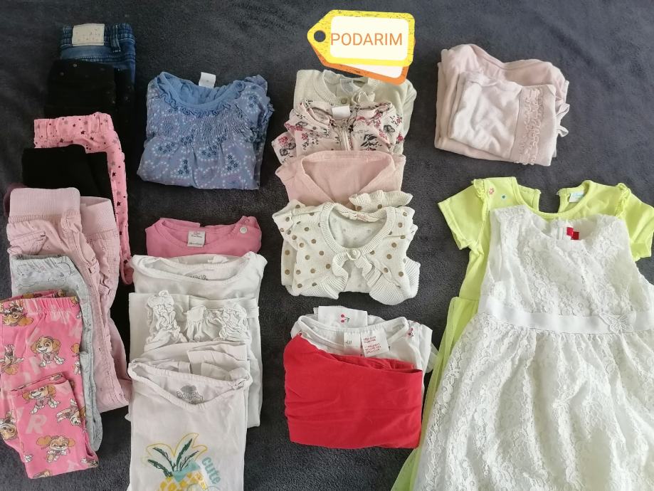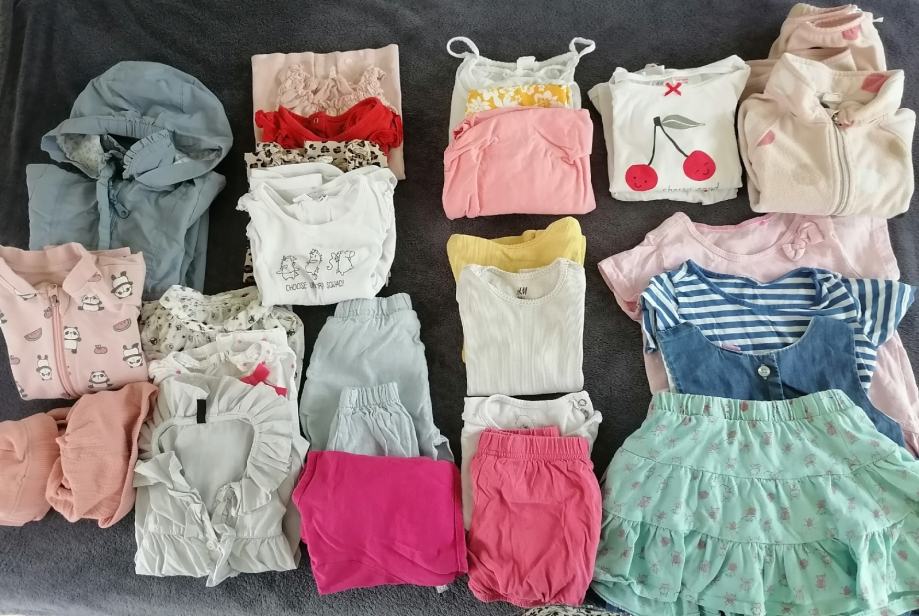 1x jakna, 1x jopica, 2x žabe, 3x srajca, 4x majica brez rokavov, 1x hlače, 1x bolero, 3x body z naramnicami, 2x dolga majica, 1x kratka majica, 1x kratke hlače, 2x pižama, 3x oblekica, 1x krilo.