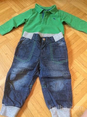 Prodam odlično ohranjene, otroske jeans hlače vel. 74 in otroški body HM, vel. 74. Oboje je kot novo in lepo barvno usklajeno.