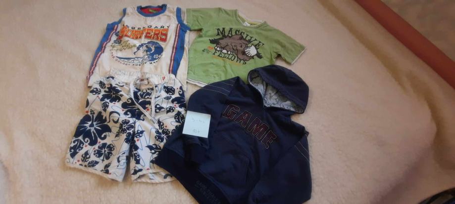 Prodam štiri fantovska oblačila (2 kr.majici, 1 kr.hlače, 1 hoody) vel. 104 vse skupaj za 10 EUR. Prevzem možen v Celju, Dobrni, Velenju ali po pošti (poštnina 3 EUR, če prej nakažete kupnino oziroma 5 EUR če pošljem s plačilom po povzetju). Priporočam se za ogled še ostalih mojih oglasov v rubriki: Podatki o uporabniku: "Vsi oglasi tega oglaševalca"). Info na tel. 030/306-962
