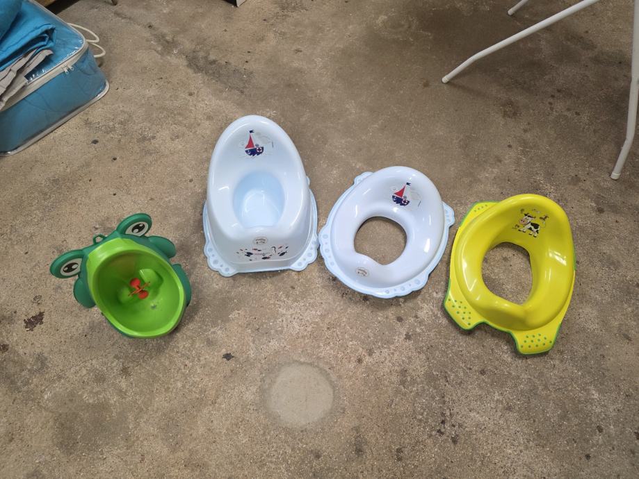 Zravne damo še ostale stvari na slikah, kahlico, nastavek za školjko in otroški pisoar.