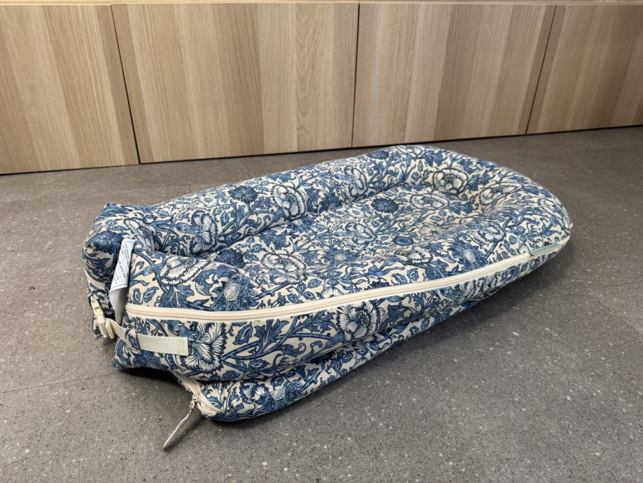 Prodam odlično ohranjeno gnezdece DockAtot. Sestavljeno je iz podloge, prevleke za podlogo, varnostnega obroča in prevleke za obroč. Vsi deli so snemljivi in pralni. Blazina gnezdeca omogoča pretok zraka in tako odlično diha. Na dnu obrobe je varnostna zaponka, ob strani obrobe so nameščeni ročaji, ki omogočajo enostavno in varno premikanje gnezdeca iz prostora v prostor. Redna cena je bila 180 eur.