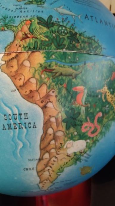 OTROŠKI GLOBUS SVETA Z NOTRANJO OSVETLITVIJO (ŽARNICA JE PREGORELA) NA RDEČEM PODNOŽJU. GLOBUS JE DIDAKTIČNI PRIPOMOČEK, DA OTROCI SPOZNAVAJO SVET NA ZABAVEN NAČIN. OPREMLJEN S SLIKICAMI ŽIVALI. ŽARNICA JE E14, MAX MOČ 25W (glej fotke)