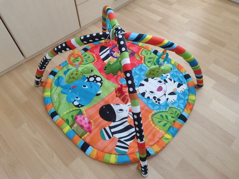 Prodam malo rabljeno igralno podlogo z loki in 5 živalcami, primerno za dojenčke od rojstva dalje. Podloga ima premer 80 cm in 45 cm v višino.