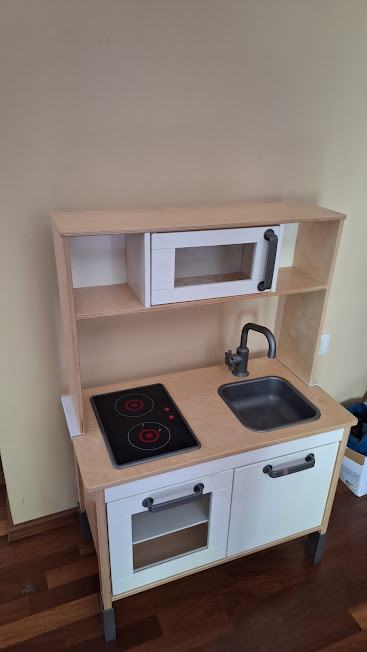 Kuhinja je sodobna, ima štedilnik, pomivalno korito, mikrovalovko in dovolj prostora, da lahko mali kuharski mojster očara celo družino s svojo domišljijo (in včasih tudi s kakšno "posebno" jedjo ).