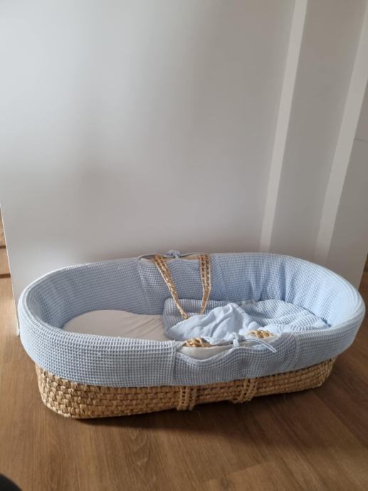 Ugodno prodam dobro ohranjeno Mojzes prenosljivo pleteno posteljico, modra barva.