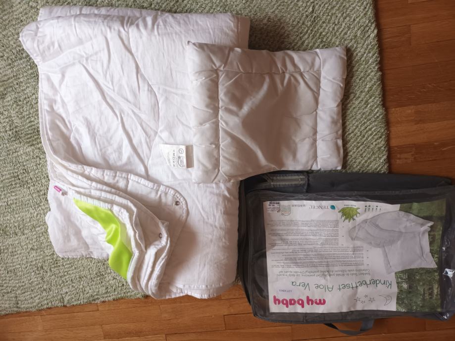 Prodam prešito otroško odejo (svodelna) 100*140 cm in vzglavnik 40*60cm. 100% bombažni saten, z aloe vero. Odeja iz poletne in prehodne odeje, s pritiskači za spenjanje obeh.