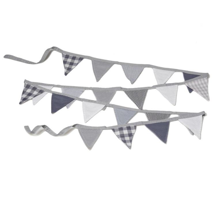 Okrasen trak z zastavicami meri 3 metre, vsaka zastavica je velika 8×10 cm, skupaj na traku pa je 21 zastav različnih vzorcev. Res srčkan okras za zabavo ali otroško sobico. Zastavice imajo dvojno plast tkanine, tako da lepo izgledajo iz vseh zornih kotov.