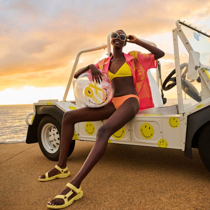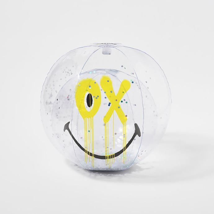 Prikupna žoga s 3D motivom Smiley in bleščicami je odlična za vodne aktivnosti in igro na plaži, morju ali bazenu.