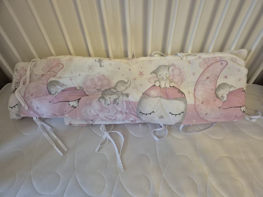 - zaščito za posteljico, ki se jo naveže na ograjo (na sliki),