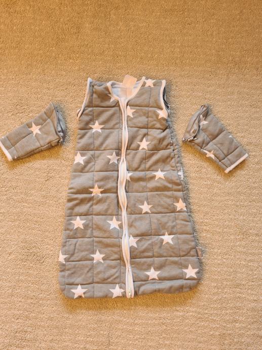 Prodam otroško spalno vrečo, vel. 70cm. Sive barve z belimi zvezdicami, rokavčki se lahko odstranjijo (zadrga). Odlično ohranjena.