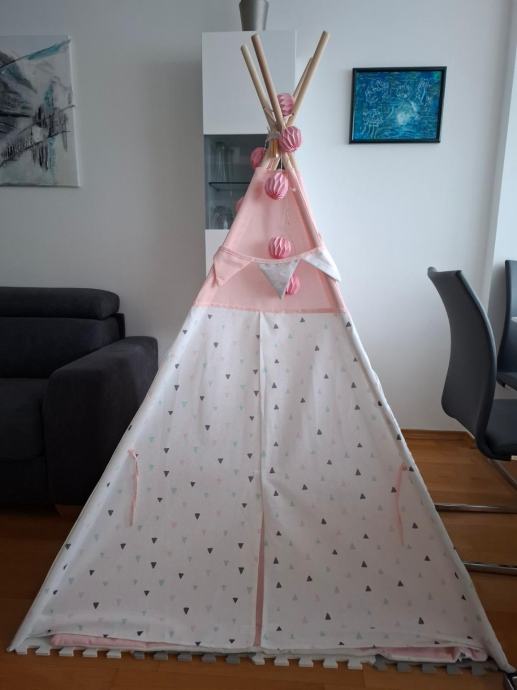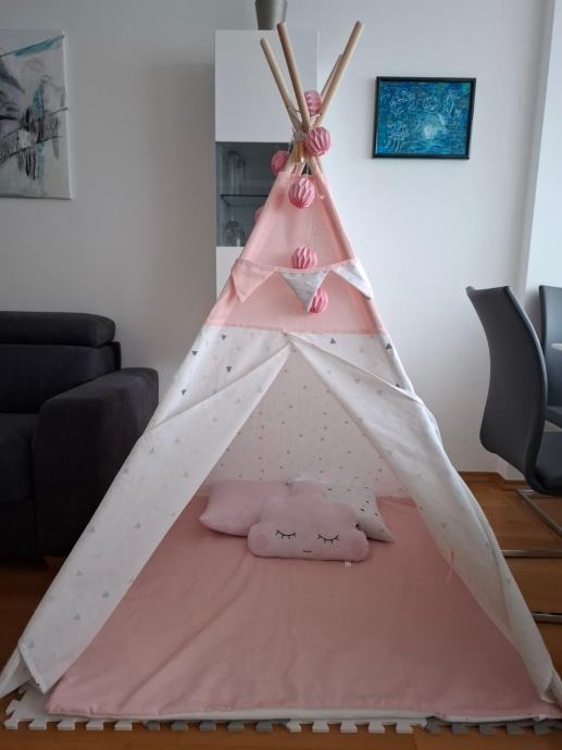 Prodamo otroški šotor - glede na barvo, primeren za delkice. Zraven dodamo tudi pralno podlogo in pa tri lične povšterčke. Star je eno leto.