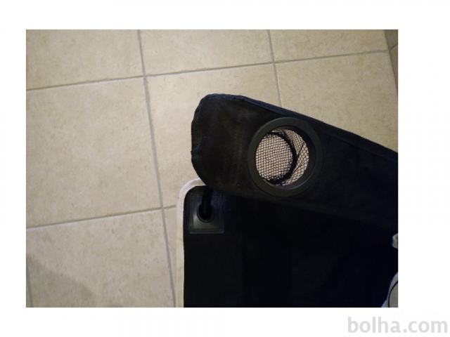 Stol je zložljiv in se ga lahko pospravi v vrečo, ki je poleg.