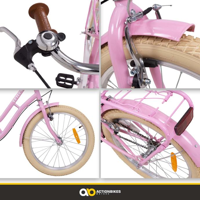 Kaj pa otroško kolo z drugačnim dizajnom? Z 20-palčnim otroškim kolesom Retrostar bo vaš malček prava paša za oči. To retro otroško kolo se ponaša z modnim vintage dizajnom v nežno roza barvi. Z 20-palčnimi kolesi je idealno za starost 6-9 let in za otroke, višje od 115 cm. Poleg trendovskega videza se to otroško kolo ponaša s številnimi funkcijami. Košara in stojalo za kolo olajšata vsako vožnjo s kolesom. Zavore V-brake na obroču otroško kolo zanesljivo ustavijo.