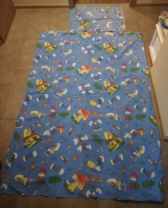 Prodam prevleko za kovter in vzglavnik z motivom Smrkci