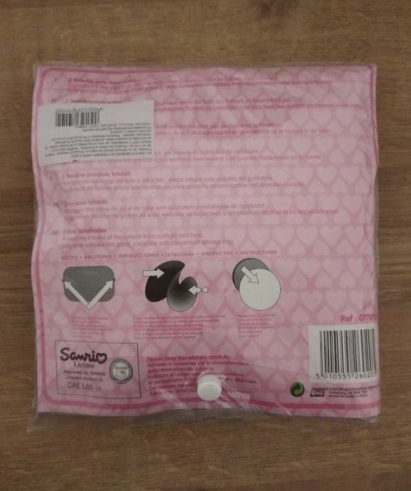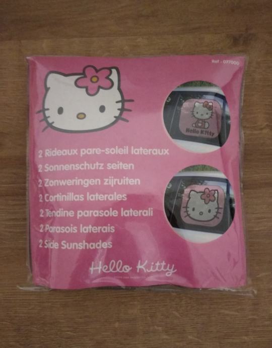 Povsem nova senčnika za avtomobilska stranska okna z motivom Hello Kitty - 2 komada. Pomaga, da se avtomobil preveč ne segreva. Omogoča enostavno zlaganje. Velikost: 36 cm x 44 cm.