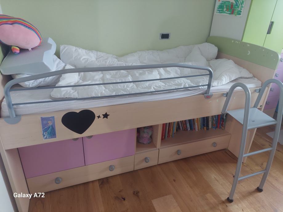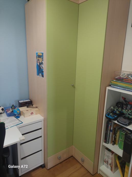 Prodam deklisko sobo alples. Postelja. Omare pod posteljo. Kotna omara. Predalniki. Miza.