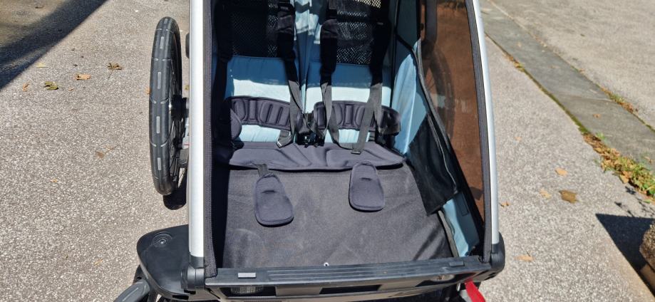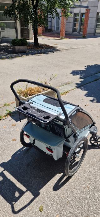 Prodamo odlično ohranjeno in malo rabljeno prikolico za kolo, ki jo lahko uporabite tudi kot voziček s štirimi kolesi. Naslonjali se spustita, da otroci lahko spijo, amortizer je prilagodljiv teži.